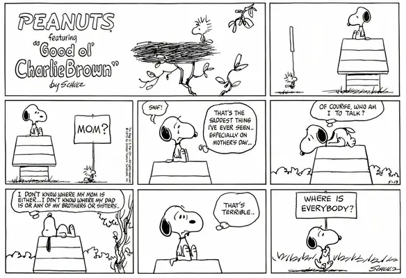 Snoopy può essere uno dei personaggi più felici della serie, ma anche lui ha un momento di unica. Qui vede il suo piccolo amico dell'uccello di Woodstock in cerca di una famiglia e Mentre Snoopy sente il suo partner, il cane inizia a chiedere alla sua famiglia e dove hanno finito . Con l'età delle persone, è facile anche per coloro che condividono il sangue per perdere il contatto con le persone. Certo, non c'è nulla di sbagliato nell'essere la famiglia Faind, ma coloro che hanno perso o non sapevano delle relazioni di sangue certamente provano certe pugnalate quando si chiedono da dove provengono.