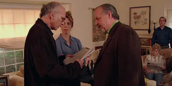 Shelley Berman appare e interpreta il padre di Larry, Natt, ed è sempre stata una gioia nell'episodio. Si prega di sopprimere il tuo entusiasmo Tuttavia, ha ottenuto il materiale più interessante nella sezione speciale della stagione 3. Larry torna per girare un film di Martin Scorsese a New York e scopre che sua madre è morta e che il funerale sta già svolgendo. Berman tocca la scena brillantemente e offre il ruolo di uomo incredibilmente eterosessuale di Larry.
