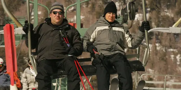 Per trovare Richard Lewis nel suo nuovo rene, Larry è amico del capo del consorzio renale e lo invita a unirsi a Cheryl, Jeff e Susie in una vacanza da sci per l'ascensore di sci della stagione 5. Mentre il consorzio renale e la figlia di sua figlia sono ebrei ortodossi, Larry deve anche prenderne uno, e Susie deve possedere come moglie. Allungamento da sci is a masterclass in improvisational comedy, because it allows Larry to play a character within a character , per vincere l'adesione a un club di campo conservatore, come quando è stato passato attraverso W.A.S.P.