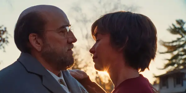Nicolas Cage e Julianne Nicholson in procinto di baciare nello scenario dei sogni