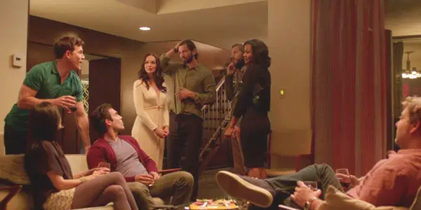 La prima metà di L'invito Si concentra sugli ospiti Tommy (Mike Doyle), Miguel (Jordi Vilasuso), Ben (Jay Larson), Claire (Marieh Delfino) e Gina (Michelle Krusiec) mentre si univano al divorco (Logan Marshall-Green) e alla sua nuova fidanzata Kira (Emayatzy Corinealdi). Credono erroneamente di essere stati invitati a una cena imbarazzante. Le circostanze sono insolite e un po 'macabre in questo film. . Tutti cercano di riconnettersi con Eden (Tammy Blanchard) dopo il divorzio di Will dopo la morte del figlio Ty, così come il suo tentativo di suicidio.