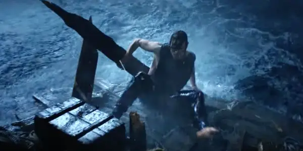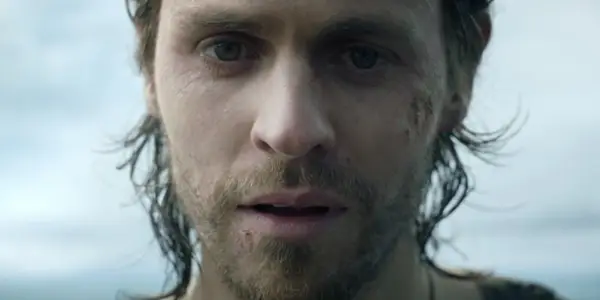 Charlie Vickers Halbrand in un mezzo di una tempesta marina nel Signore degli Anelli: gli anelli del potere.