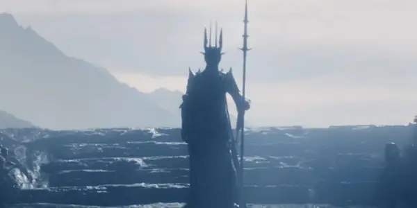 Sauron con la sua spada nel Signore degli Anelli: gli anelli del potere.