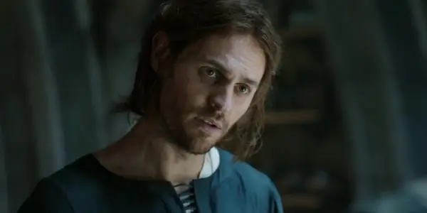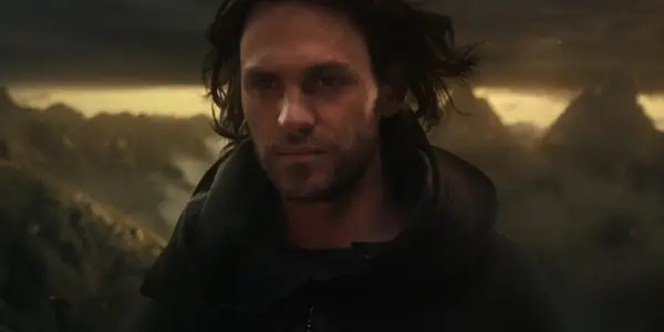 Charlie Vickers nei panni di Halbrand Sauron a Mordor negli anelli del potere.