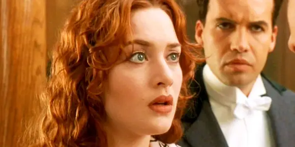 Kate Winslet mentre Rose sembra sorpresa in Titanic